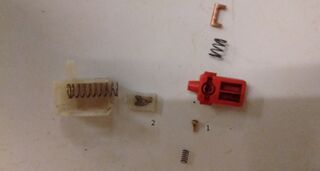 The fix was to remove the pin (1) before putting the switch back together. Now it is a single-state kill switch and therefore needs to be kept pushed until the engine goes to a complete halt.